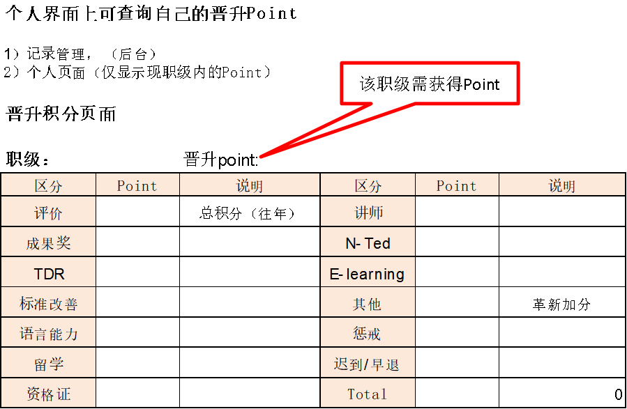 2.定義每個關鍵職位的任職標準,如社員升為主管需要多個任職年限,需要多少考核指求點,可以追溯往年的所有考核指標項目,現將該企業的職位升職資格表附下圖: